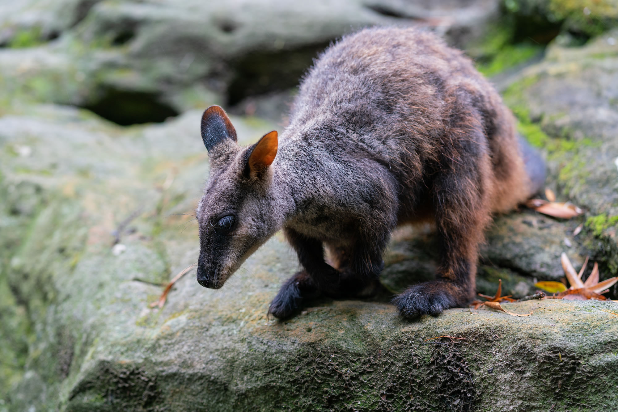 A unique and beautiful acrobat of the marsupial world, the brush-tailed rock-wallaby (Petrogale penicillata) leaps and bounds its way around rocky outcrops in rugged and steep country along the east coast of Australia.